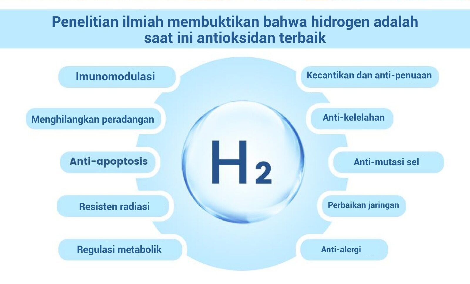 Hidrogen memberikan sifat Antioksidan, Anti Inflamasi, dan Sitoprotektif yang bermanfaat bagi sel