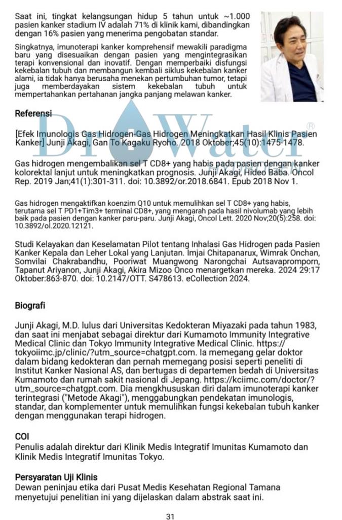 Dr+Water Hydrogen Terapi Pendamping AMAN, MURNI, ALAMI atasi Penyakit Degeneratif seperti KANKER, TUMOR, STROKE, JANTUNG, DIABETES dll.